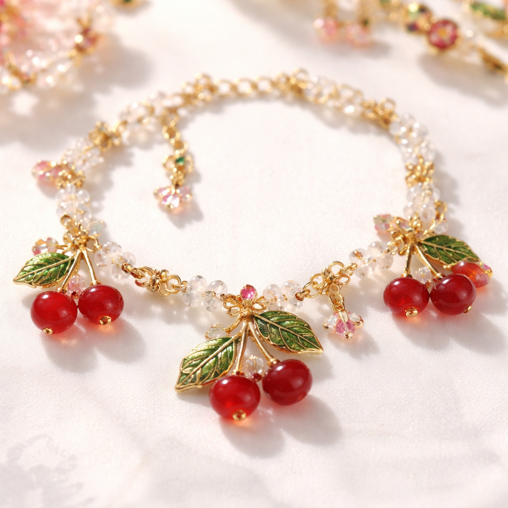 Bracelet with cherries charms and small beads