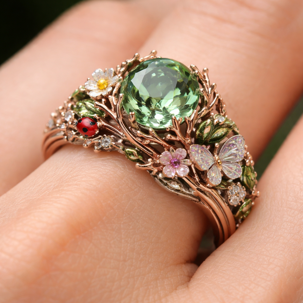 A beautiful enchanted ring with an enchanted background that might be cursed