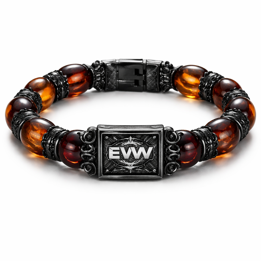 Only amber stones red and black bracelet sports style EVW sports logo for man simple sguare in the centre , baroque style