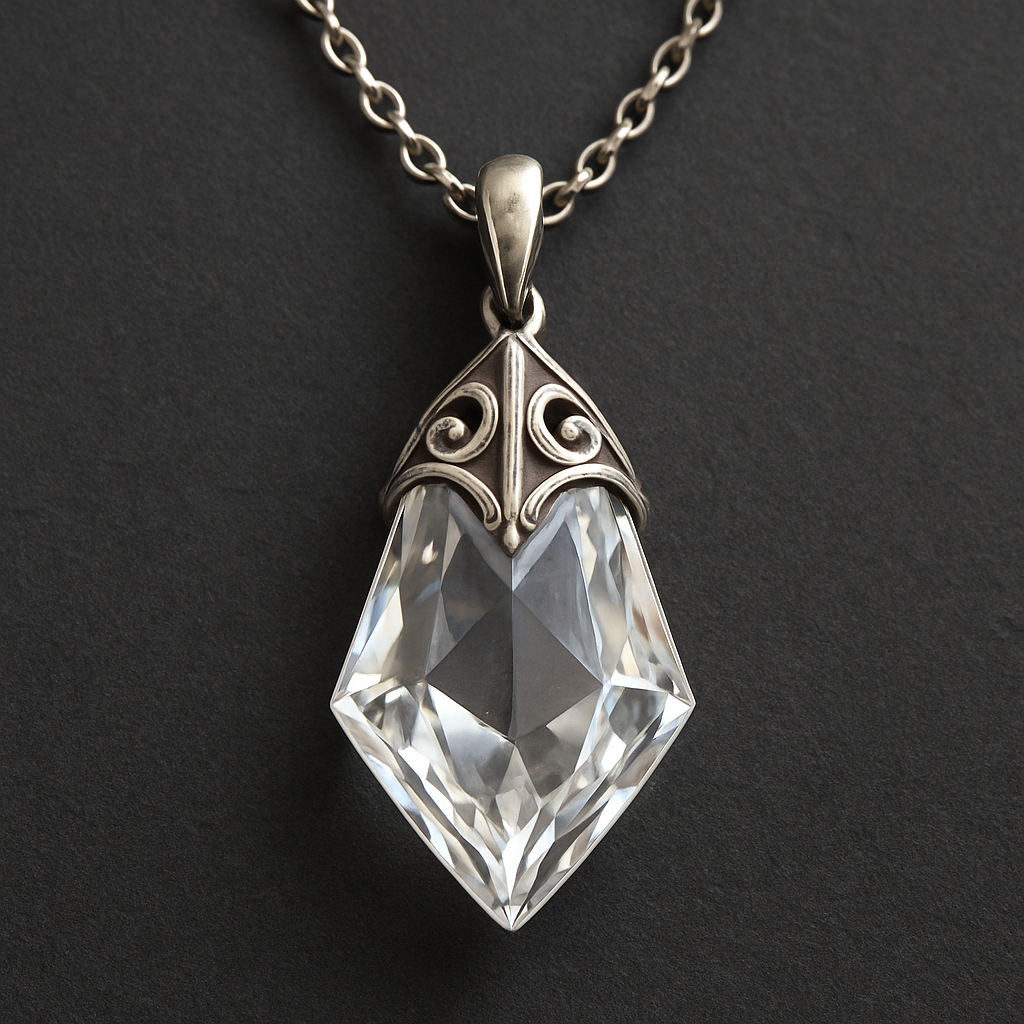 Diamond ring with a smooth heart-shaped stone. The ring is round and features small diamonds.