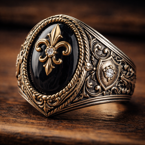 A women's ring. "Jewelry design of a ring, the ring has a sculpted face exactly like this image, dark metallic texture, ...