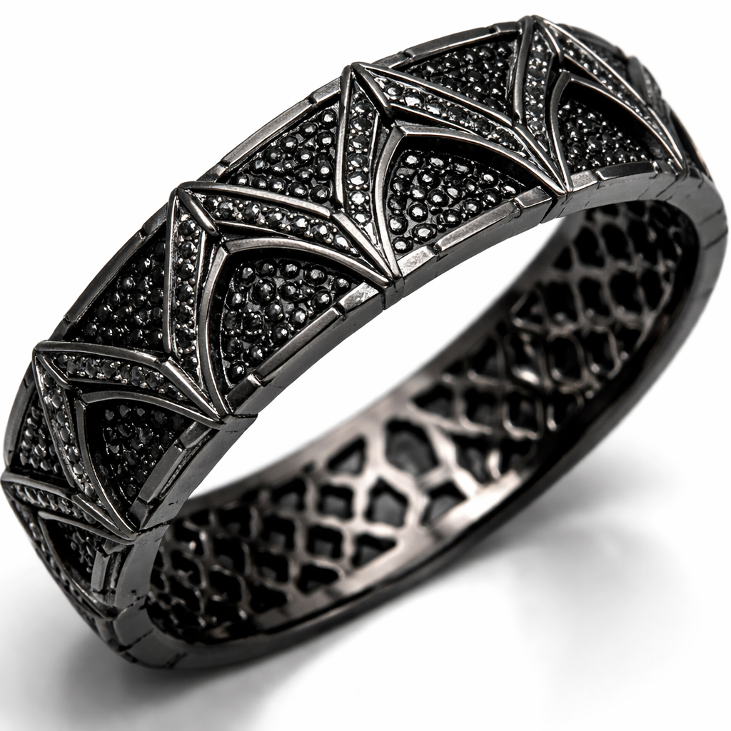 Geomatric bangle for men of black diamonds of arches and sharp ages
