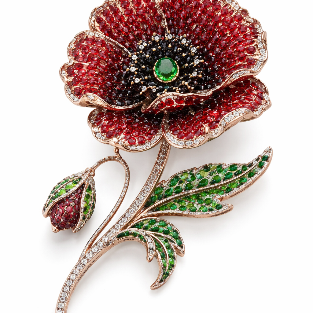 Common poppy flower in high jewelry