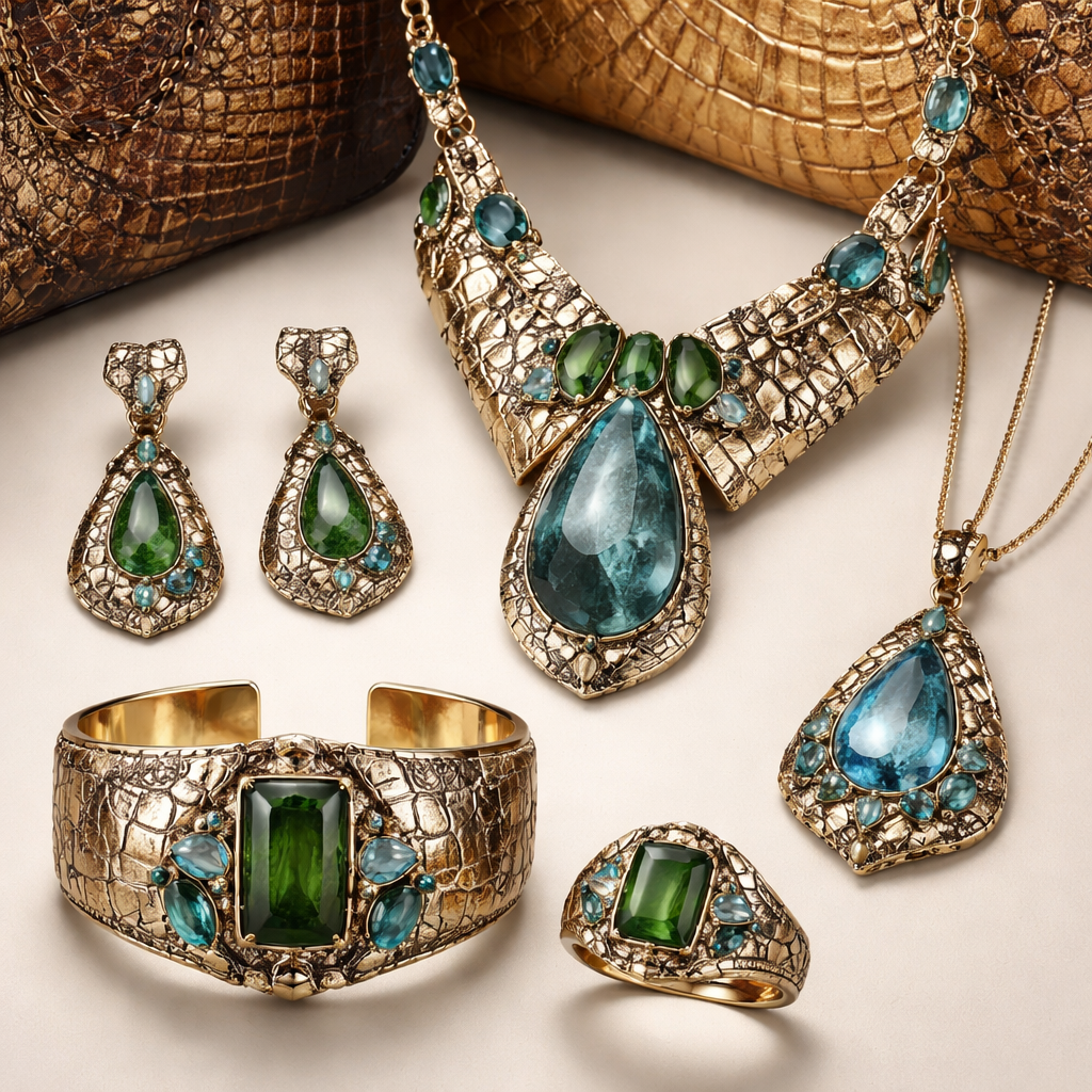 Design jewelry collection with leather print on metal for Brahmin bags with gemstones