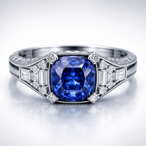 I want a stainless steel ring, a sapphire and diamonds on the side