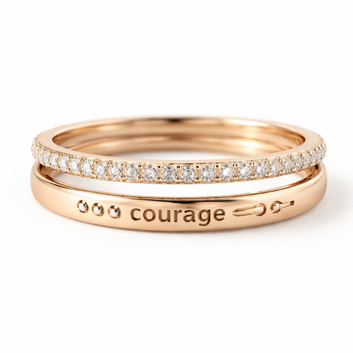 A women's ring. un colier fin avec un mot secret écrit en morse exemple de mot courage