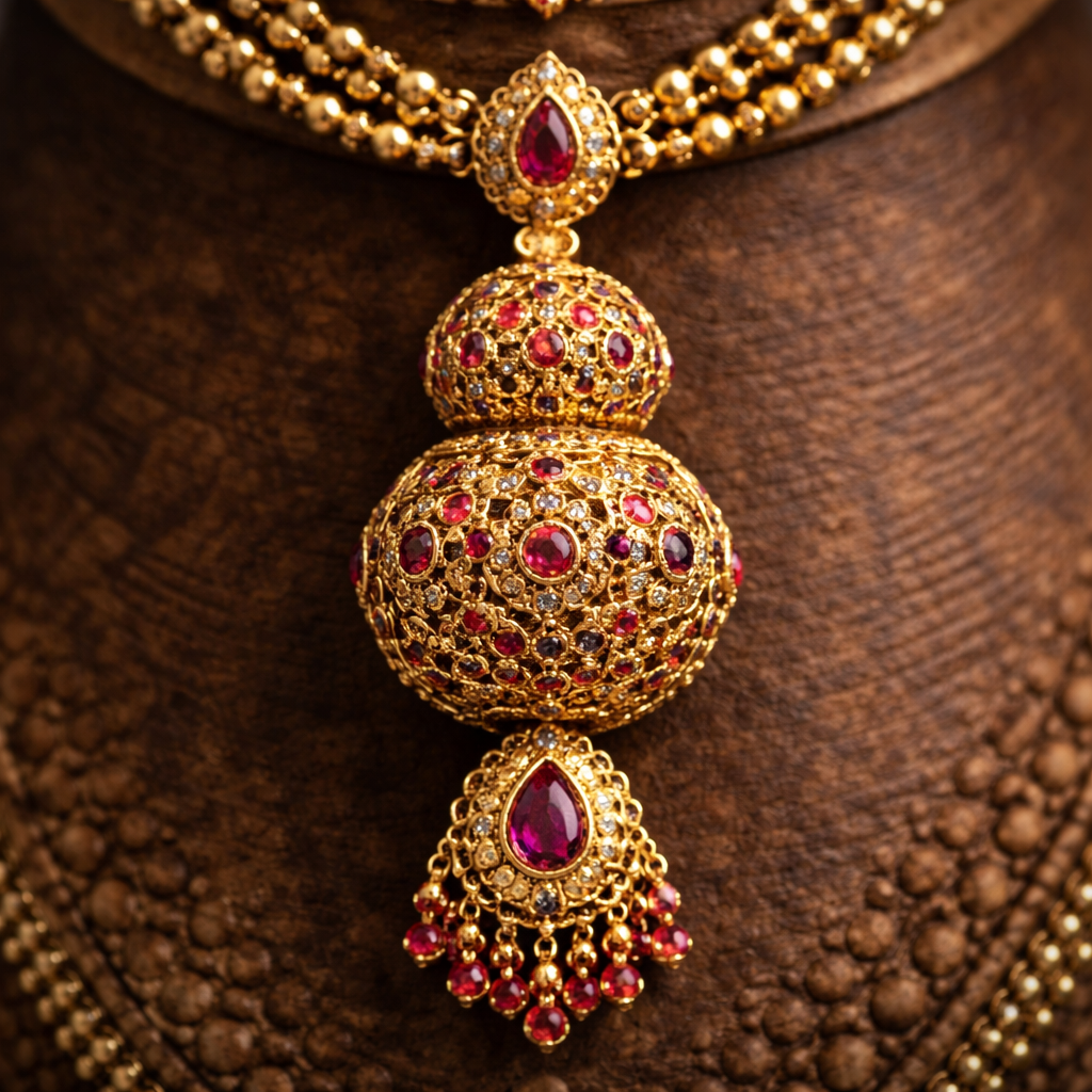 Multilayer gold ball with ruby pendant, ethnic style