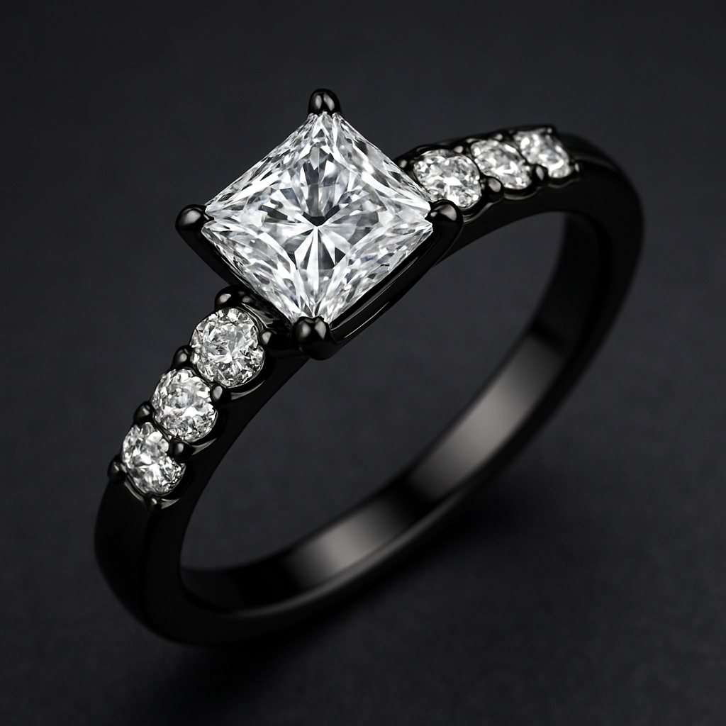 Schwarzer Ring mit weißen Steinen in Diamantform