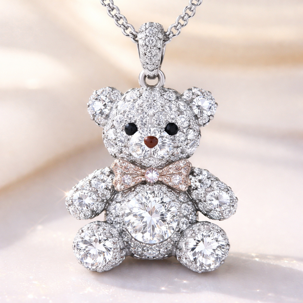 Make a pendent using teddy bear shape diamond . Refinement: ring