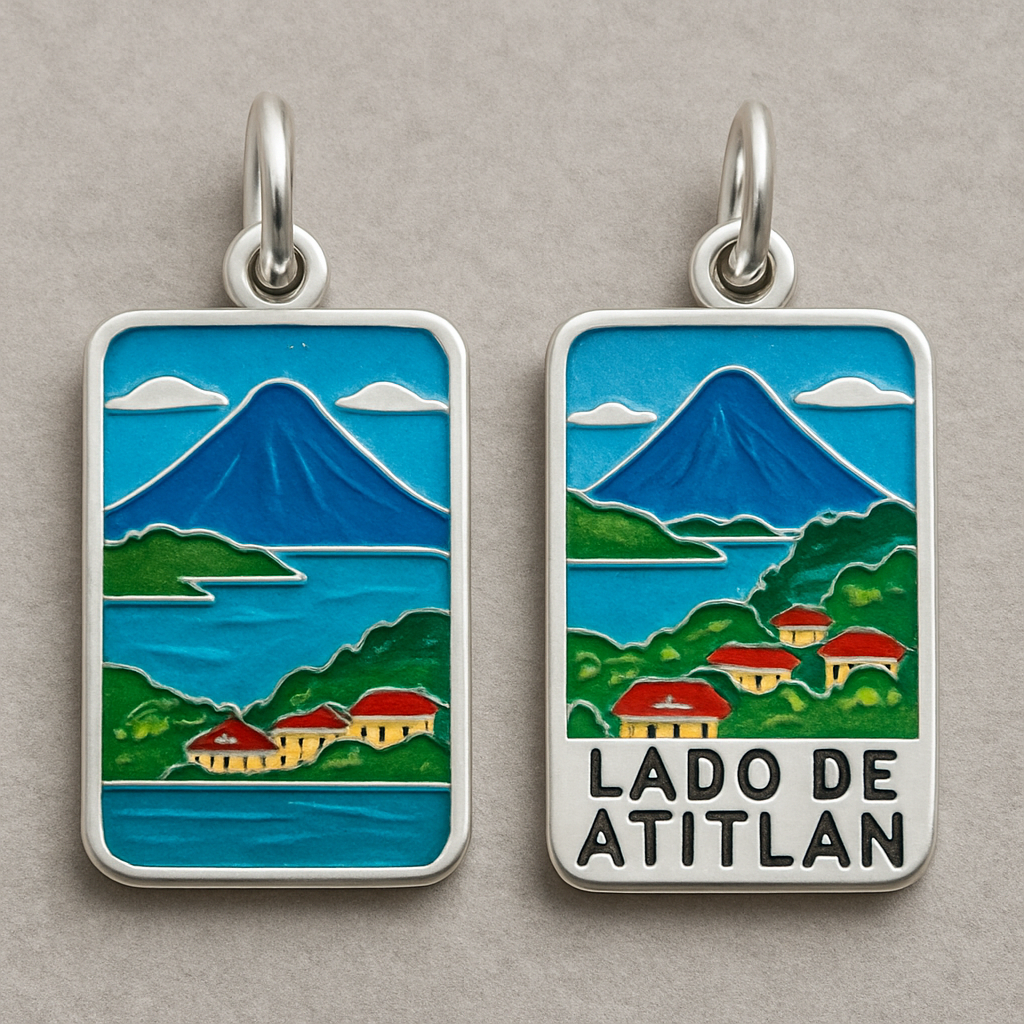 El lado de atitlan de Guatemala creado con enamel en charms de plata