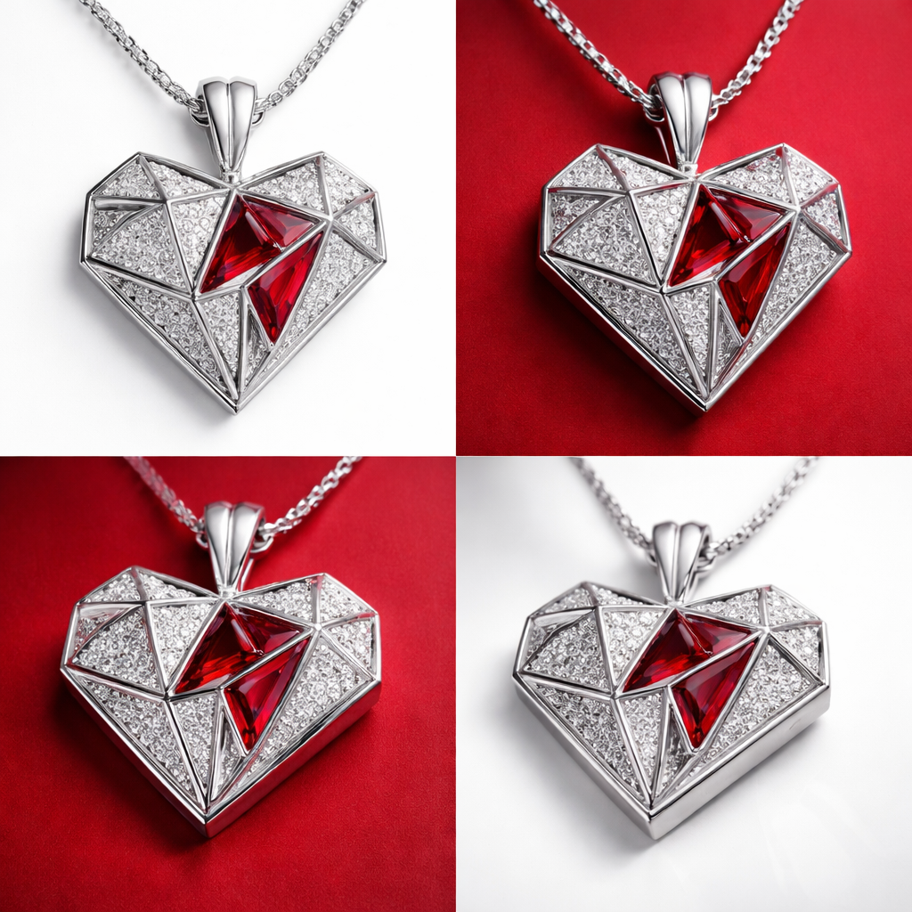 One peendant of Geomatric heart shape of architecture and bold of different angle of white and red background