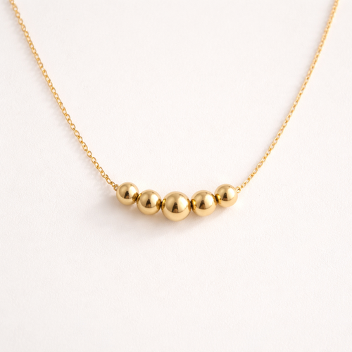 A minimalist women's necklace made of gold. I want a necklace with this gold things on the photo that i uploaded.beads e...