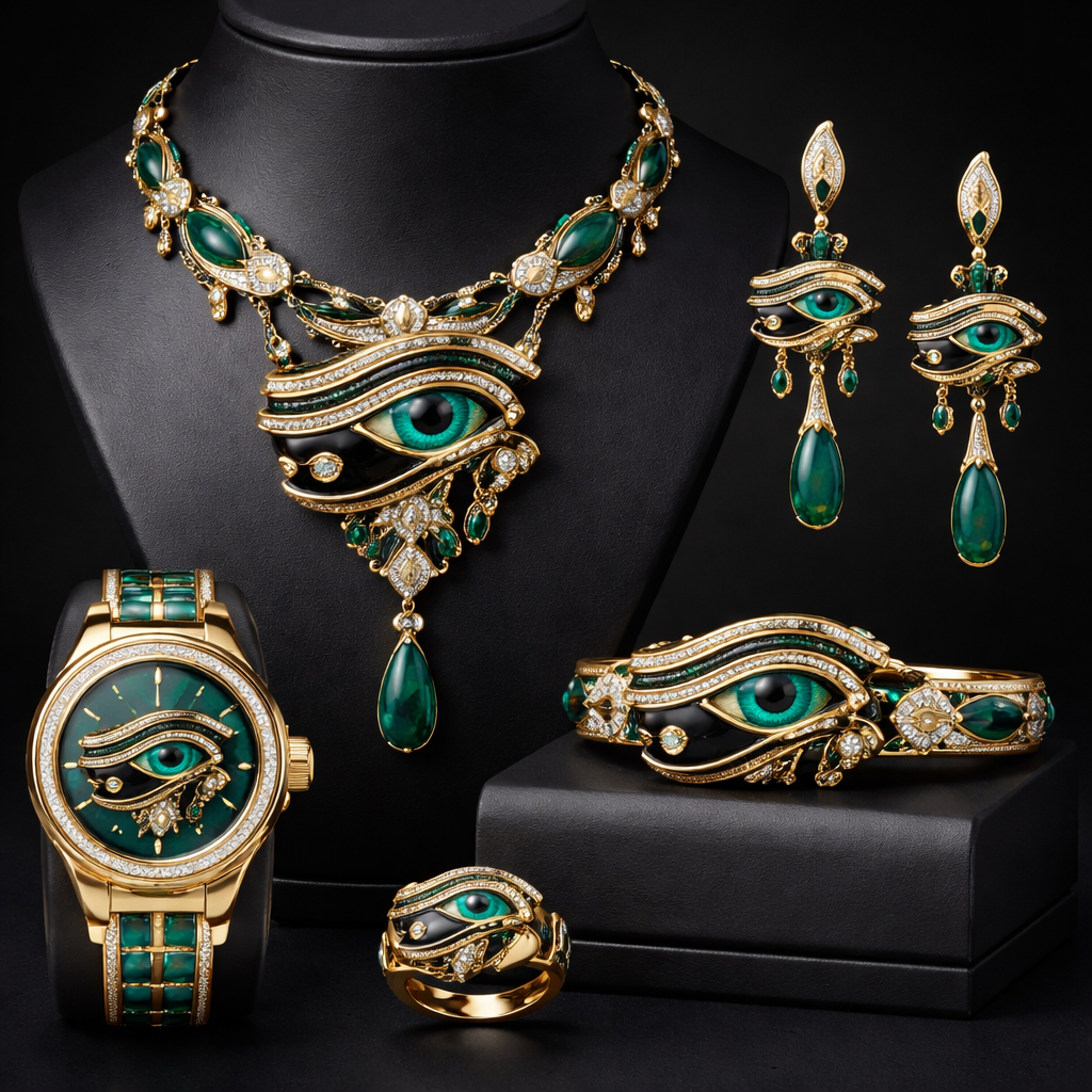 emirate eye of urus safari Green Gold dark Egypt simple set earing watches neckles full set miniature