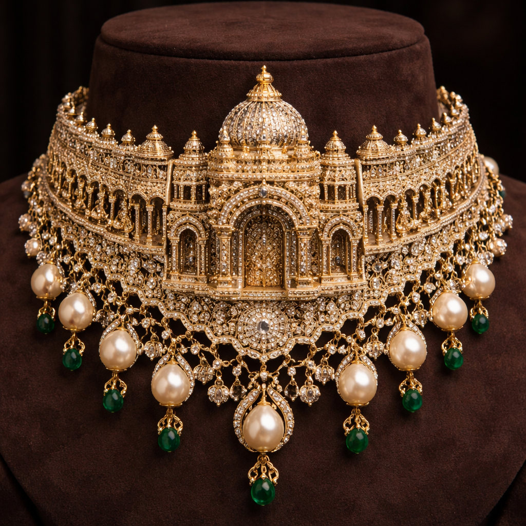 should be created like how a jain temple looks and should have the details of the temple but no god included. should be a choker