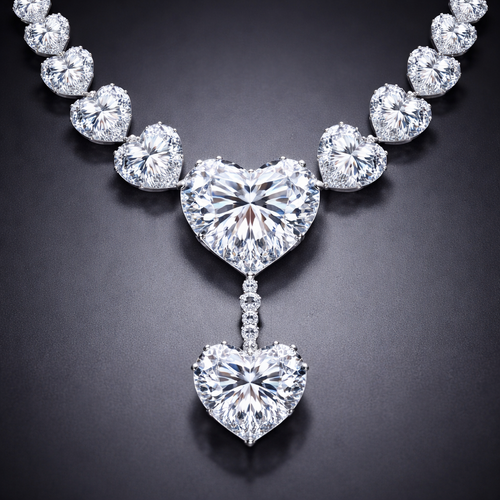 Necklace with dainty heart diamonds hanging every inch in a delicate chain