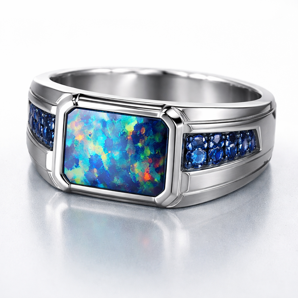 I want a stainless steel ring, a sapphire and diamonds on the side