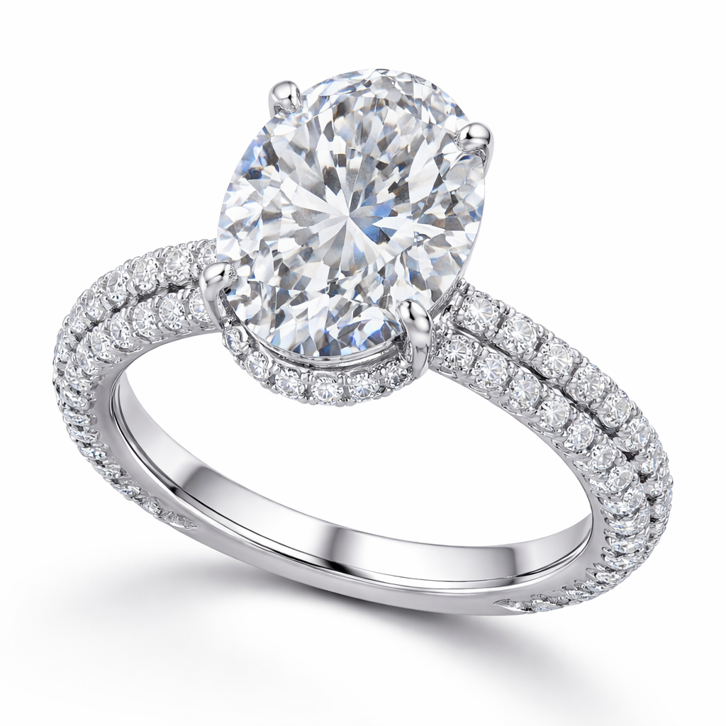 Mia Oval Cut Diamond Engagement Ring With Diamond Hidden Halo And 3D Diamond Band