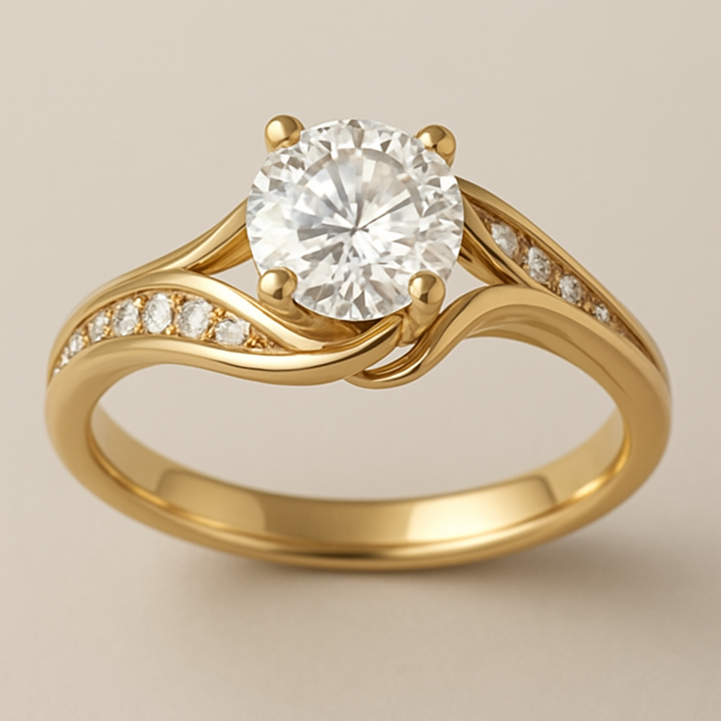 Design a delicate diamond ring set in platinum on a yellow gold band shaped like a butterfly