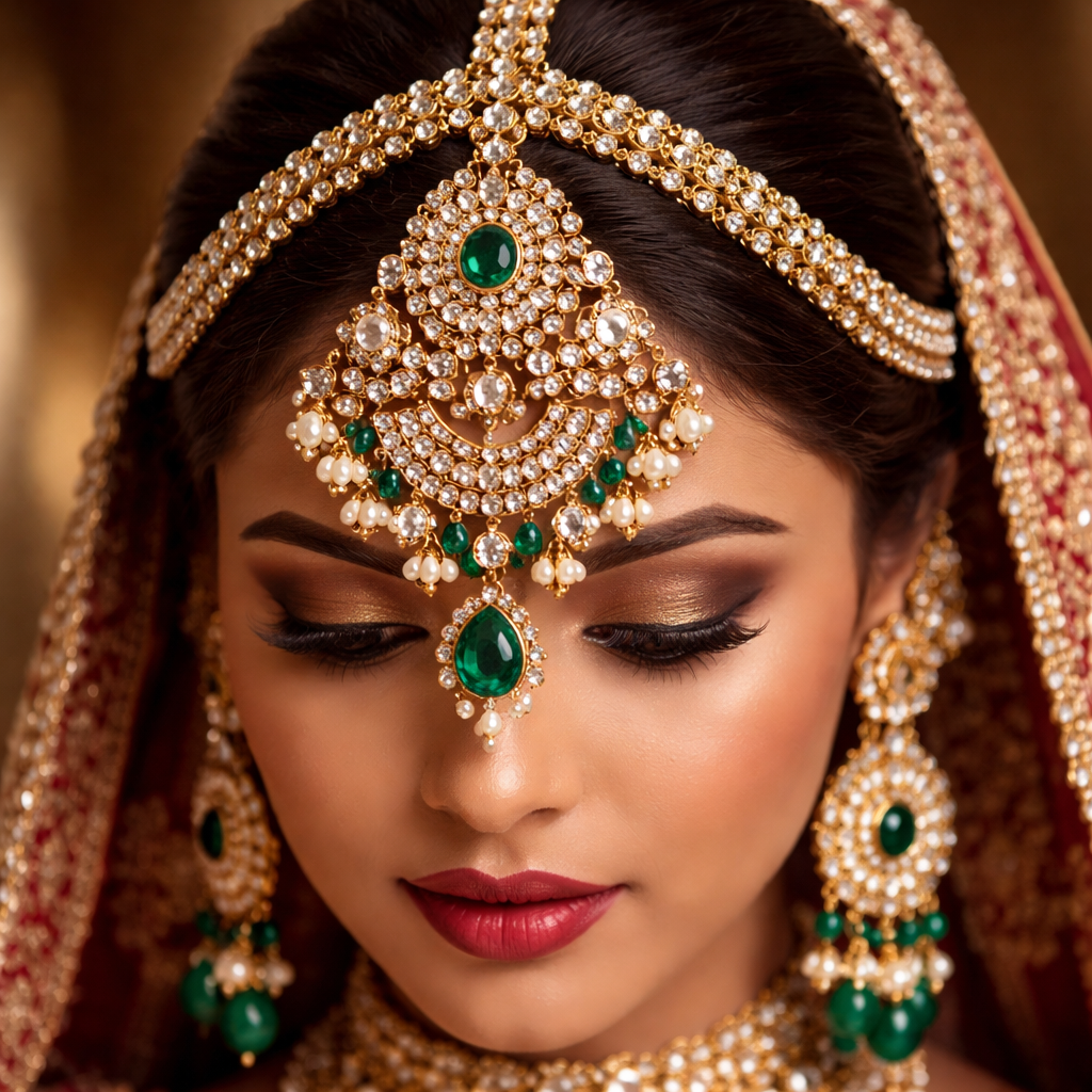It’s big pendent with a long thick chain connected to it worn on the head by Indian brides, royal style