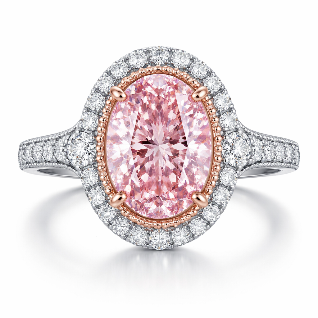 Alice Diamond Pink Oval Cut Halo Engagement Ring