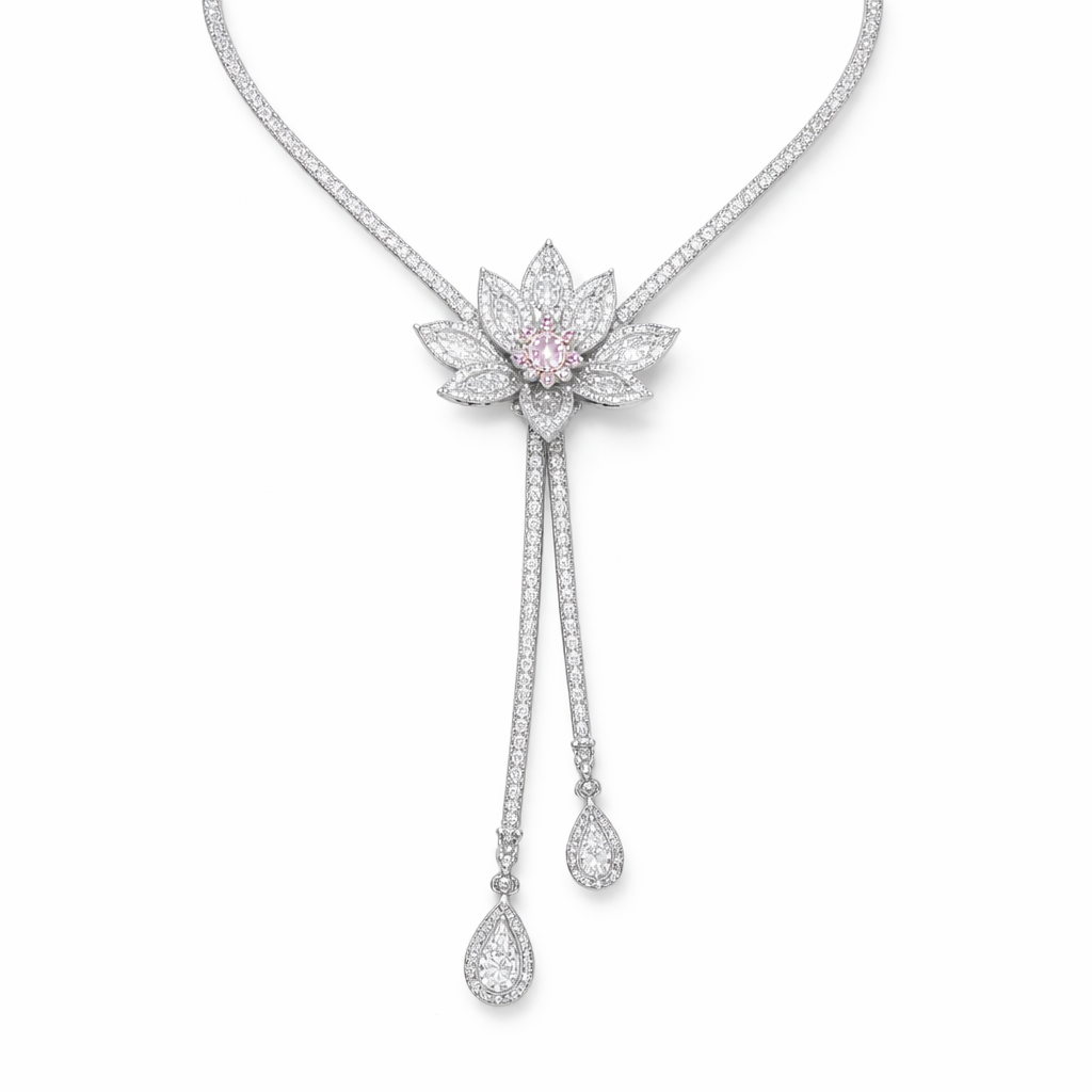 Tie style necklace with lotus flower in the center, modern style