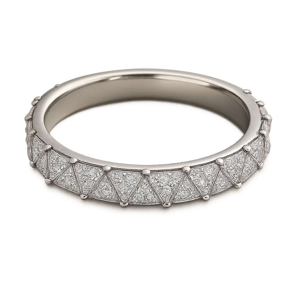 Diamond ring with a smooth heart-shaped stone. The ring is round and features small diamonds.