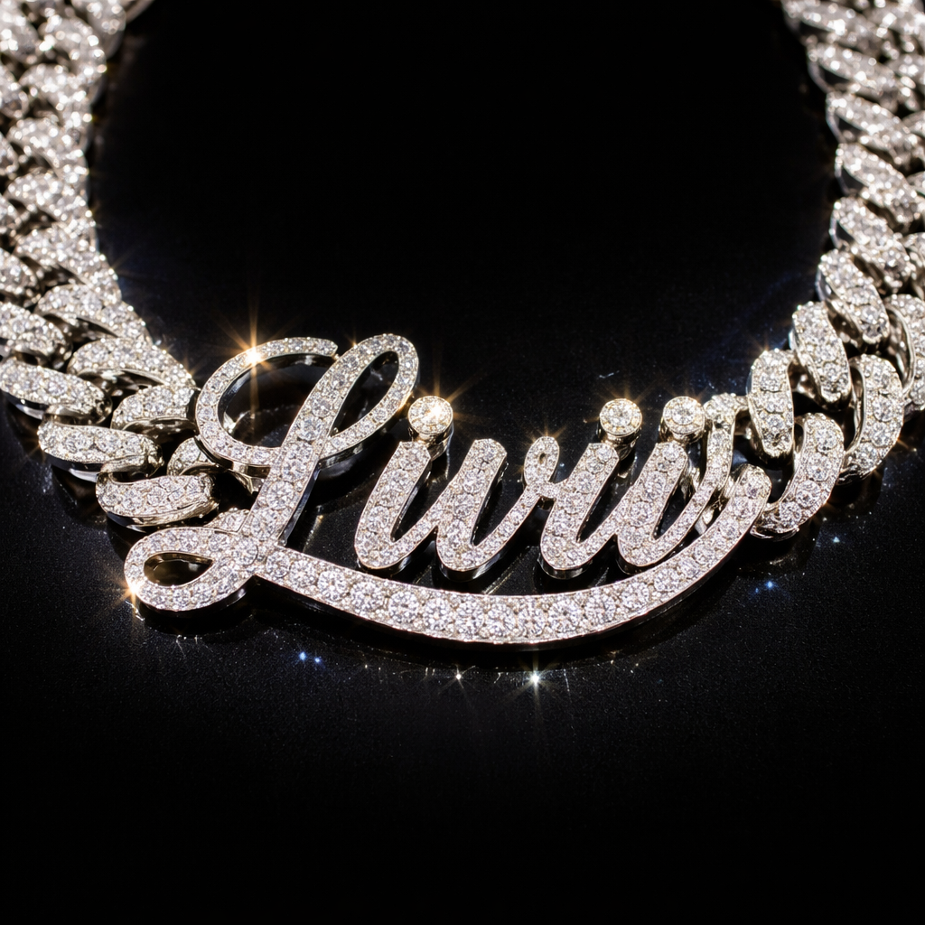 Cuban link chain made of full diamonds write Livii also en make is look beautiful , classic style