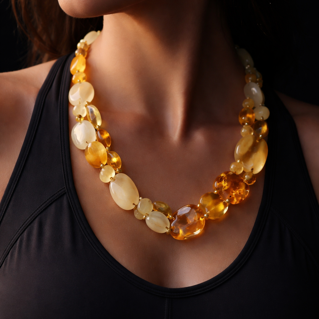 Only ambers stone very light no steel strict shapes one line combined necklace for women white yellow colours mix in sport style to wear in a dark room