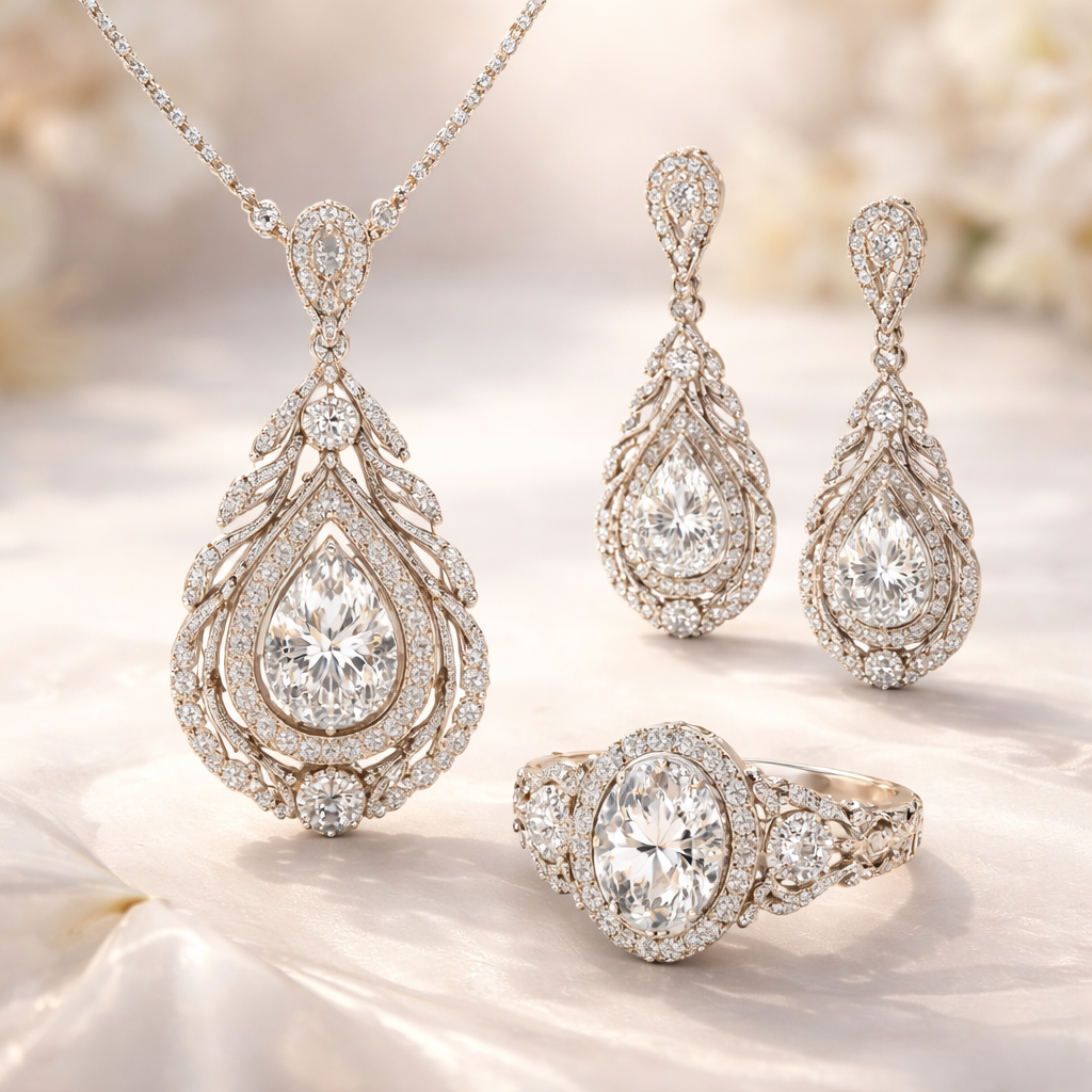 Create pendant and earrings and keychain with brown leather design with gemstones