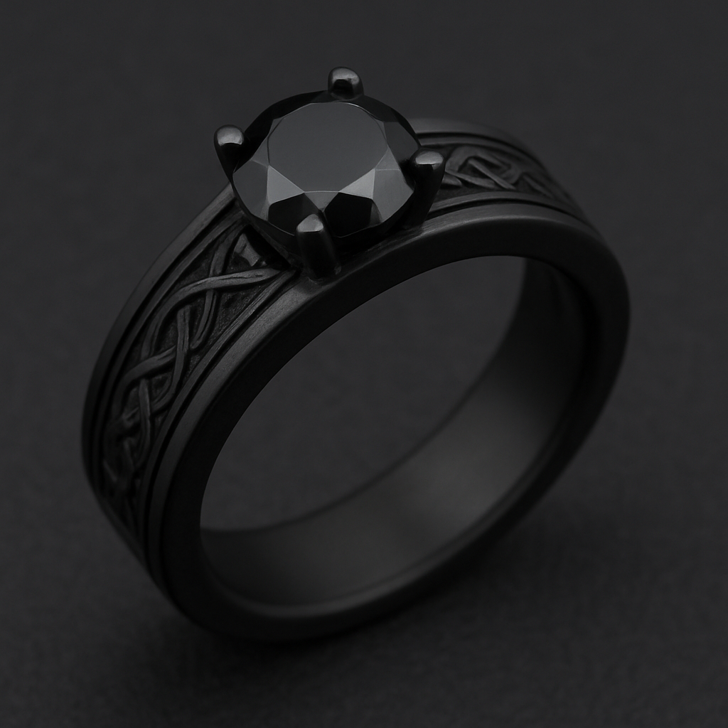 Black Engagement titanium ring, some cool design in the middle kinda like a band very cool, I work in Security so would need to be a Bit plain , gothic style
