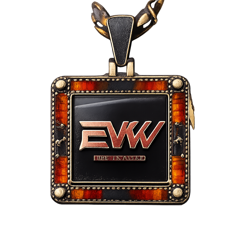 Only amber stones red and black sports style EVW sports logo for man simple sguare in the centre , luxury style