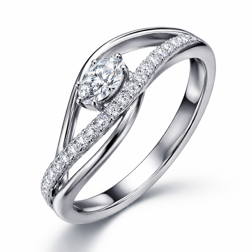 A modern women's ring made of platinum with diamond stones. diamond ring with a signet style look metal flowing up and a...