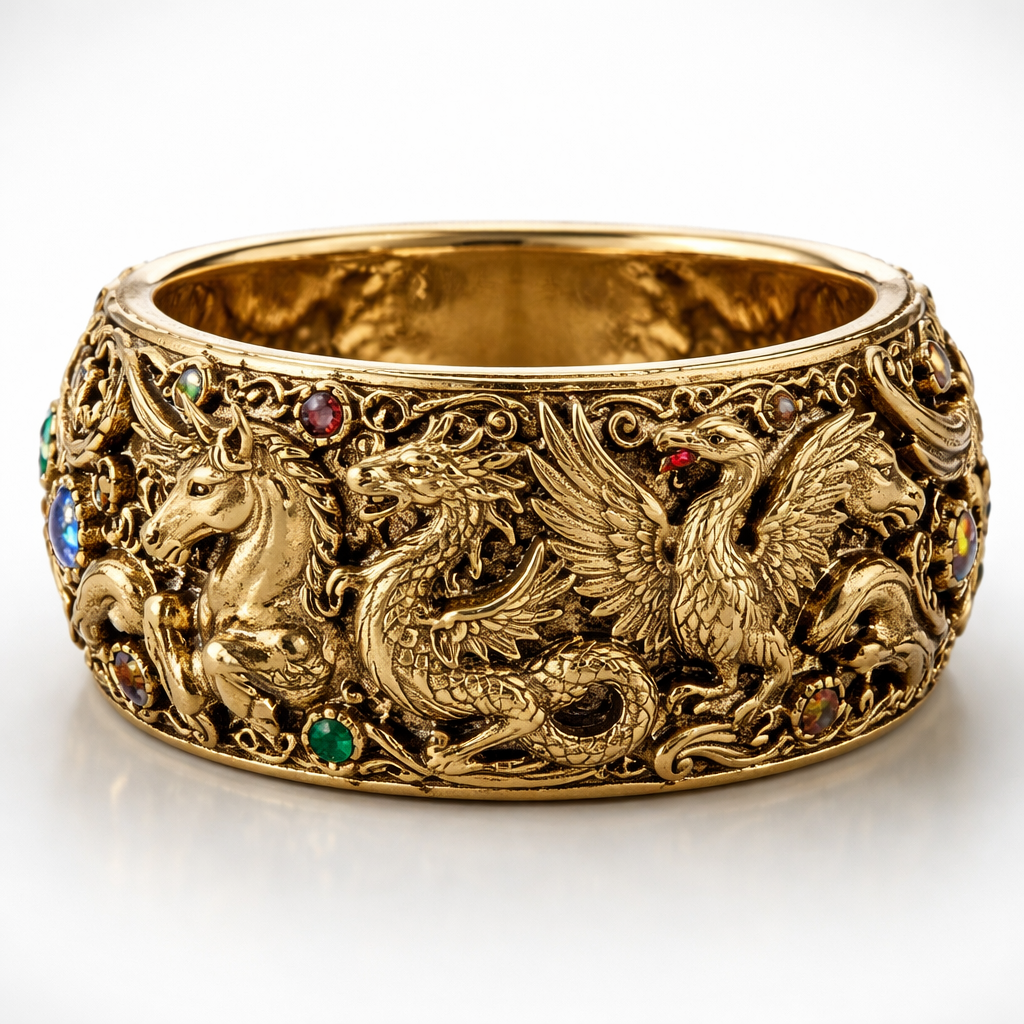 Golden band ring with every mythical creatures
