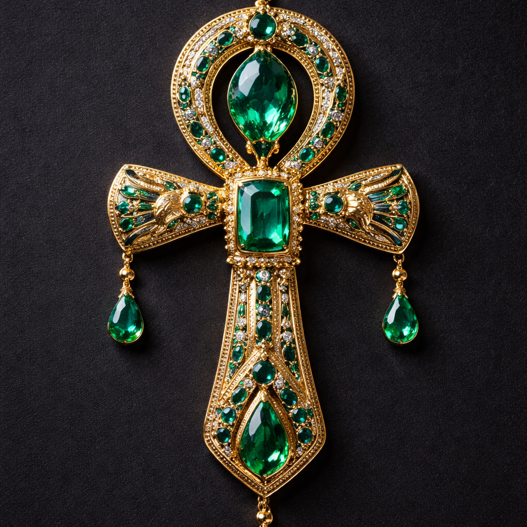 Kee of life égyptienne royal emirate Gold Green stone