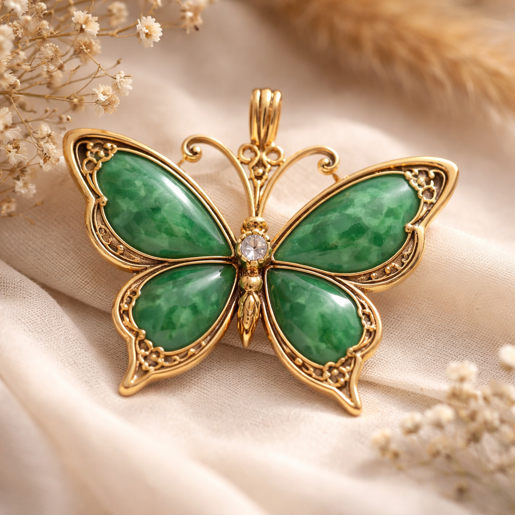 I want a butterfly- simple in gold trim with jade inlay, bohemian style