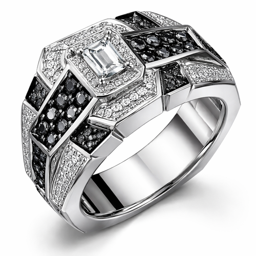 Geomatric edgy angles ring for men of rectangular and sqaure shape of white and blcak diamonds of unique design and sp...