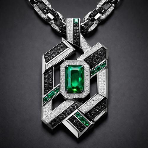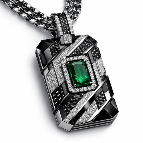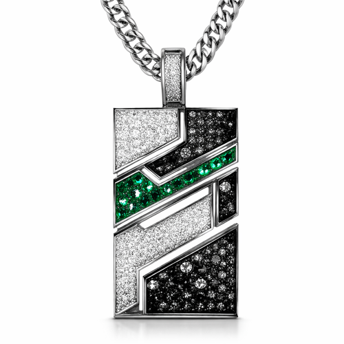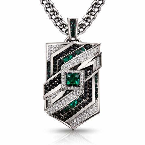 Geomatric angles and edges pendant and chainfor men of rectangular and sqaure shape of white and blcak diamonds and gr...