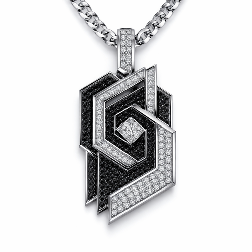 Geomatric egdy angles and edges pendant and chainfor men of rectangular and sqaure shape of white and blcak diamonds a...
