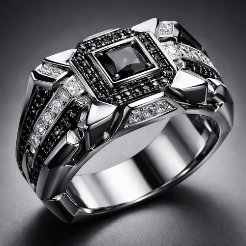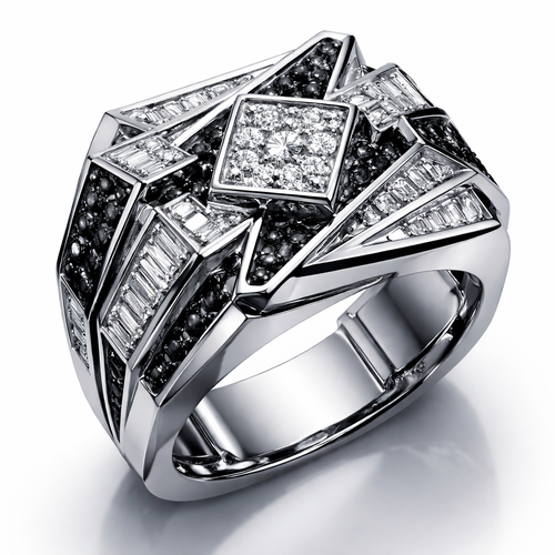 Geomatric sharp angles edgy angles ring for men of rectangular and sqaure shape of white and blcak diamonds of unique ...
