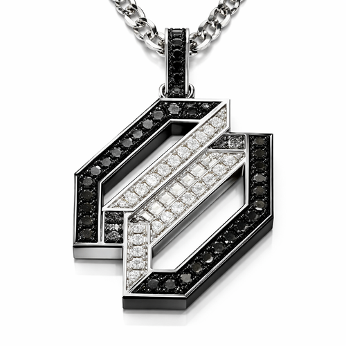 Geomatric edgy angles and edges pendant and chainfor men of rectangular and sqaure shape of white and blcak diamonds a...