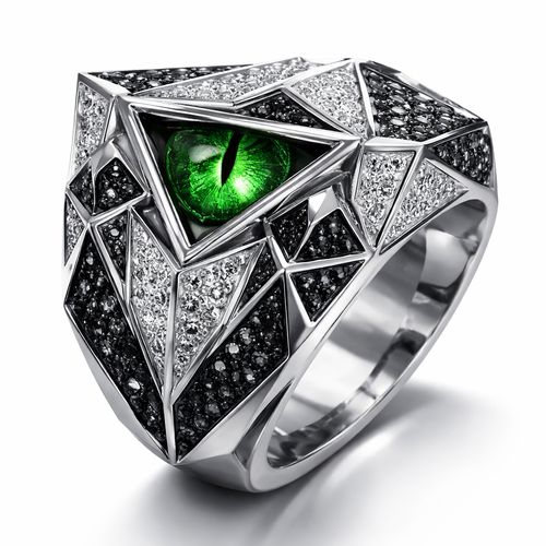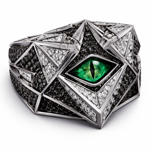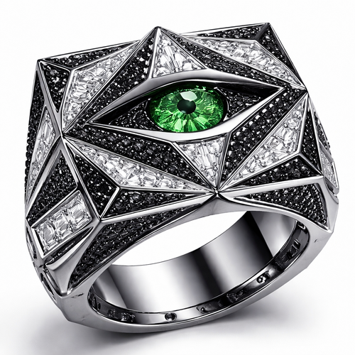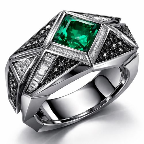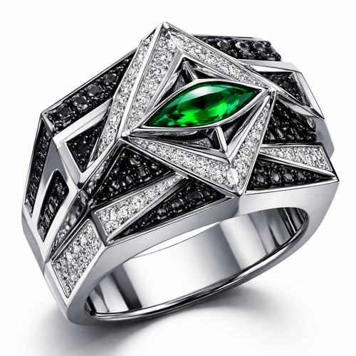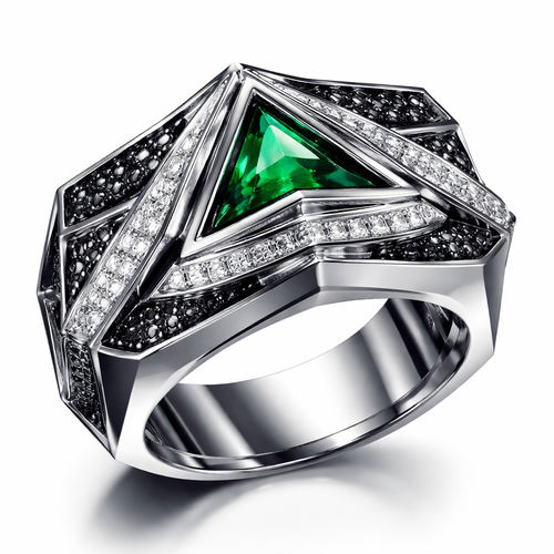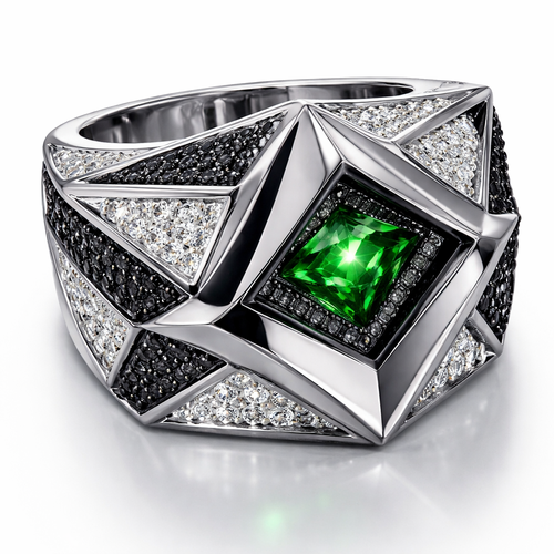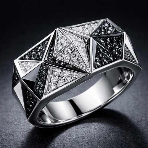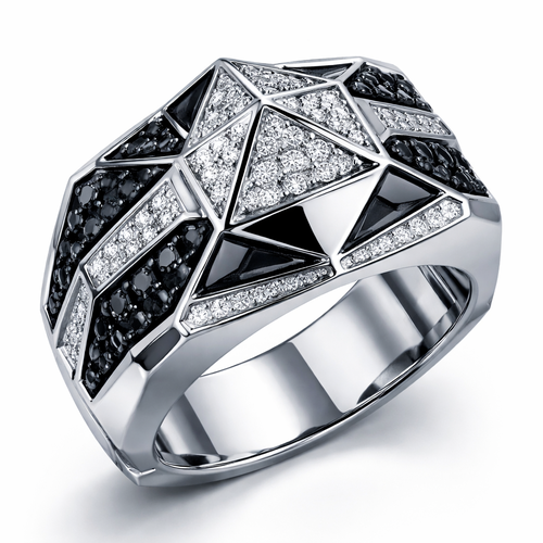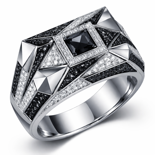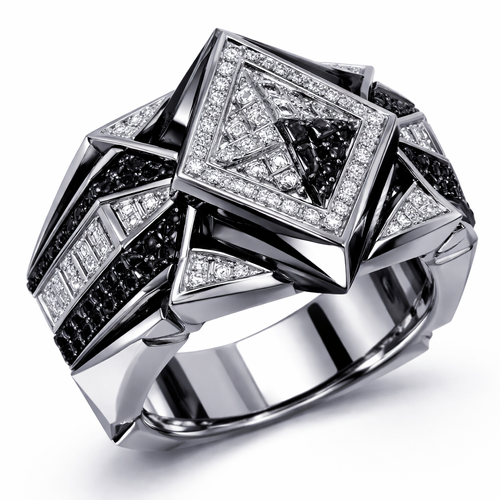 Geomatric pyramid sharp angles edgy angles ring for men of rectangular and sqaure shape of white and blcak diamonds of...