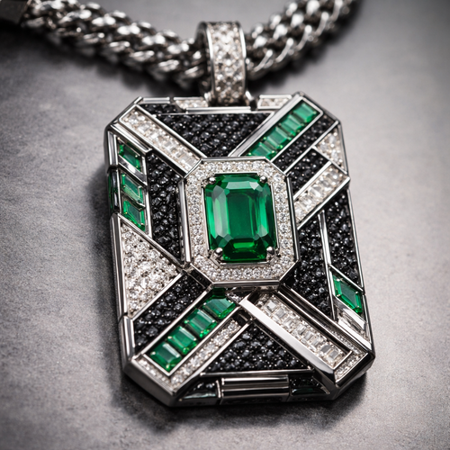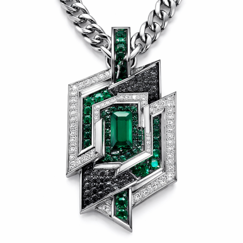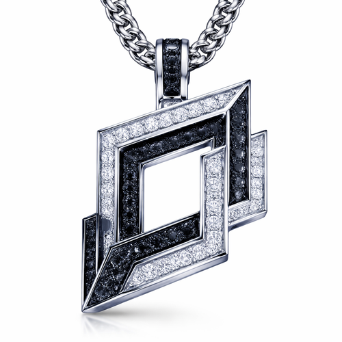 Geomatric edgy angles and edges pendant and chainfor men of rectangular and sqaure shape of white and blcak diamonds ...