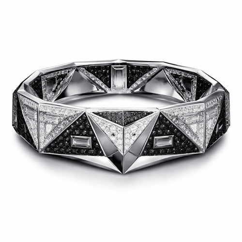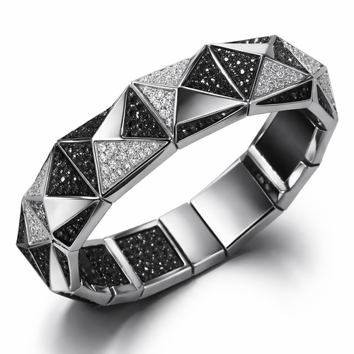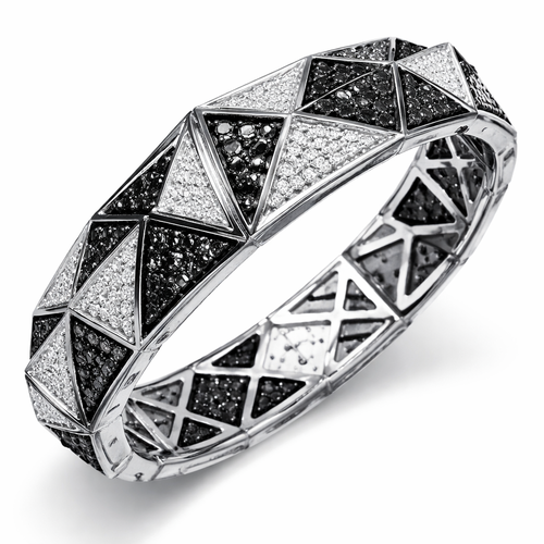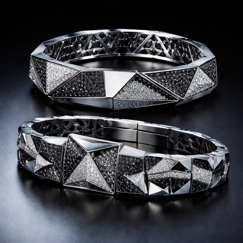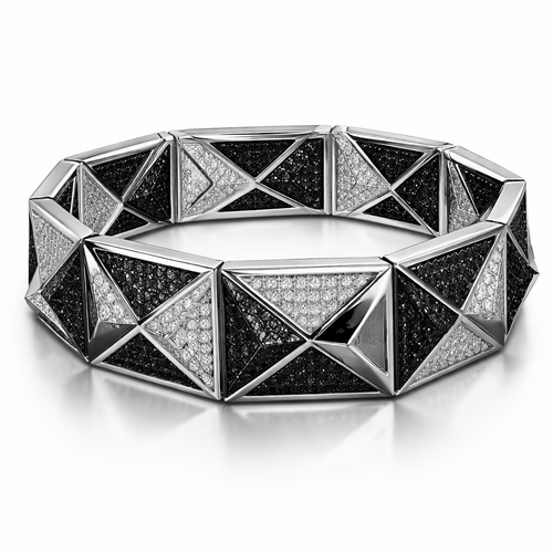 Geomatric pyramid sharp angles edgy angles bangle for men of rectangular and sqaure shape of white and blcak diamonds ...