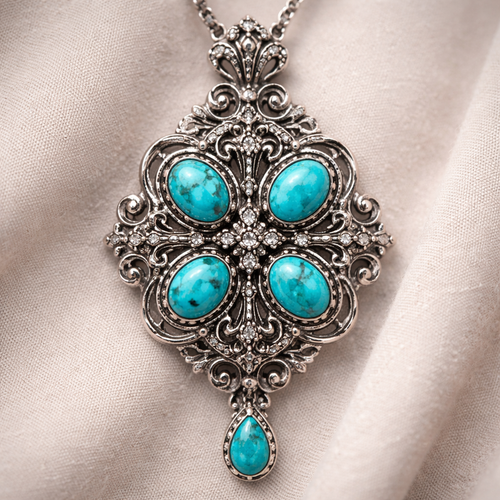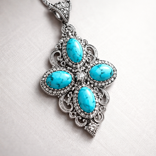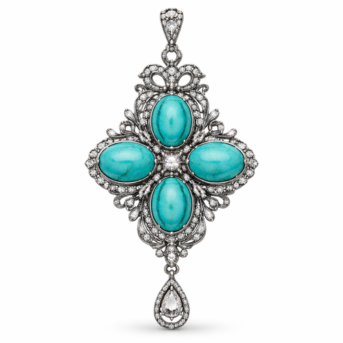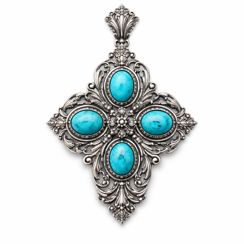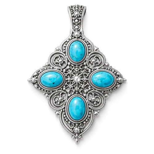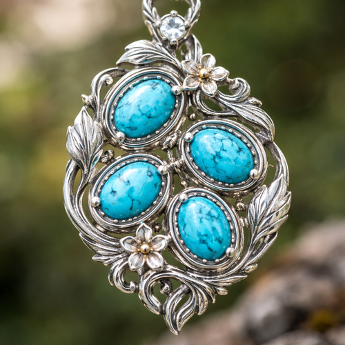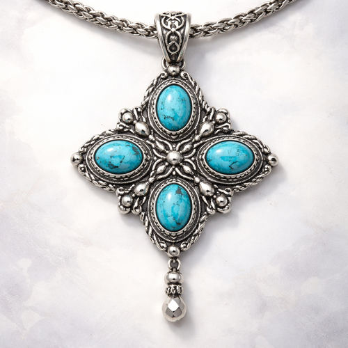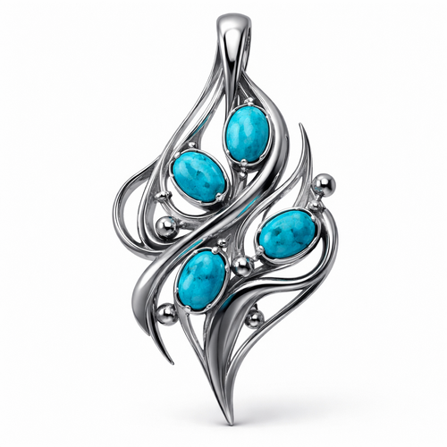 Four 6x4 calibrated oval turquoise cabochons set in silver pendant