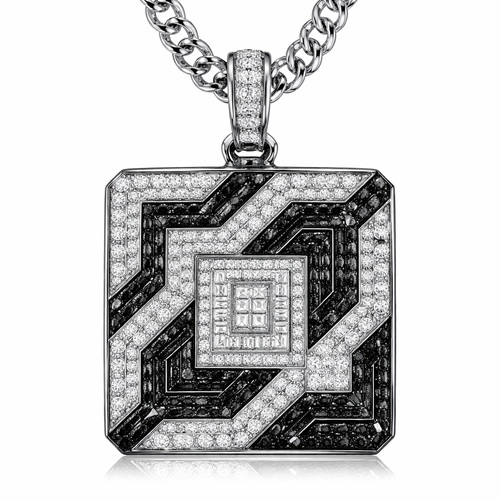 Geomatric square pendant for men of white and black diamonds of unique designs and shapes