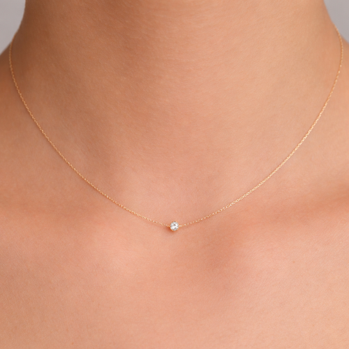 A plain golden necklace with a tiny diamond