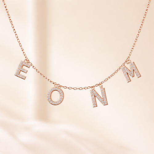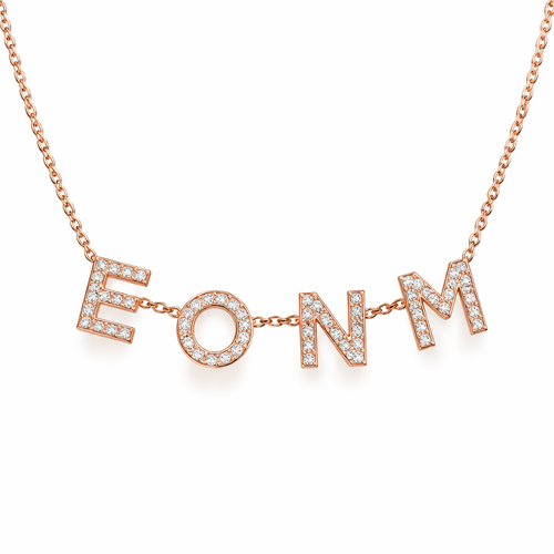 אני רוצה שרשרת קלאסית ודקה בצבע רוז גולד, בשילוב האותיות באנגלית E,O,N,M שהאותיות יהיו מולחמות מהצדדים בצורה אסתטית, משו...