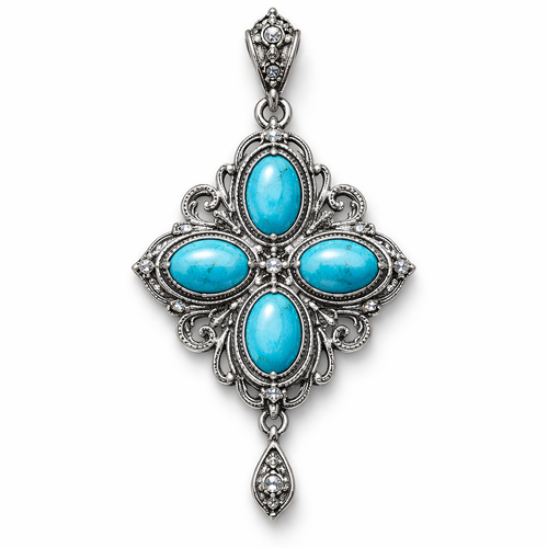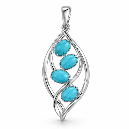 Four 6x4 calibrated oval turquoise cabochons set in silver pendant