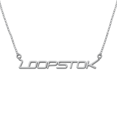 silver necklace with the word LOOPSTOK