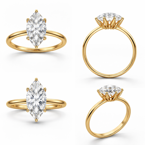 4 carat marquise solitaire ring with 6 prongs, yellow gold, and create a view from different angles